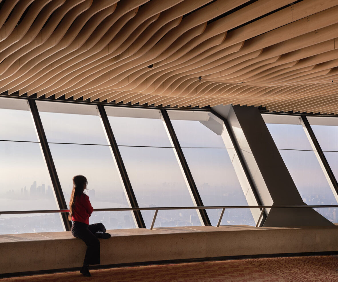 With an undulating biophilic ceiling system, new sloped structural glass, durable materials that evoke the Canadian landscape, and a revitalized outdoor terrace, the renovated Lower Observation Level offers an exhilarating “treetop” experience at Toronto’s CN Tower.