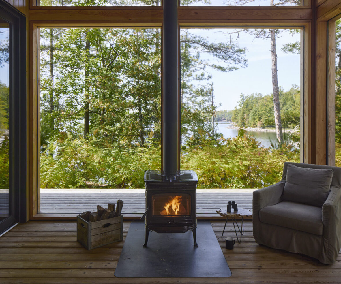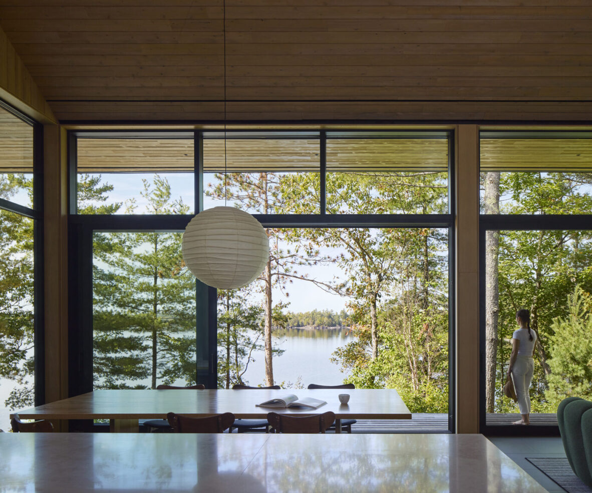 Designed for hosting friends and family, this spacious split-level cottage in the Kawartha Highlands navigates a rocky hillside to immerse its occupants in nature and invite the lake into the house.